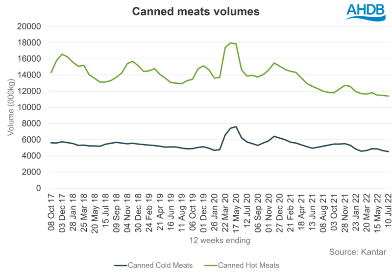 新冠肺炎疫情爆发之初,人们开始囤积食品,导致肉类预制食品与UHT奶(经超高温瞬时灭菌处理的牛奶)销量激增。自那之后,随着时间的推移,销量又有所回落。但随着通货膨胀对家庭财务造成影响,这两类食品能缓解人们的财务压力吗?